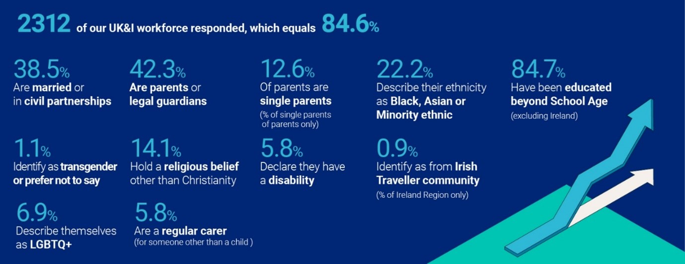 As a market leader, we’re in a unique position to enable real change; both on a local and national scale. Through our FAIRER Consulting business, we’re actively modelling high standards of DE&I throughout the wider world of work, helping businesses across Ireland and beyond become more inclusive spaces and doing our part to enact positive change. And with 47% of our senior leadership team in Ireland being female, we’re demonstrating a clear commitment to driving more equal gender representation at a senior level.